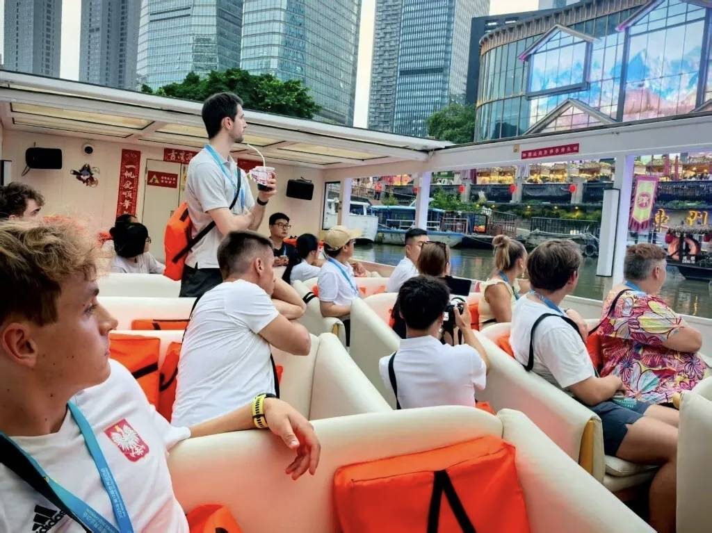 指引员体验夜游锦江。